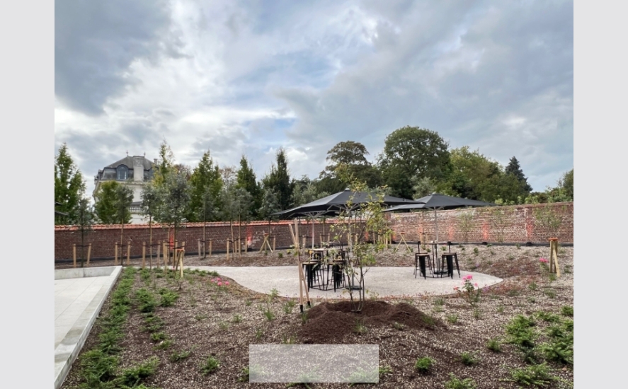 De zonnige terrassen hebben prachtig uitzicht op de Sint-Amanduskerk en de groene binnentuin.